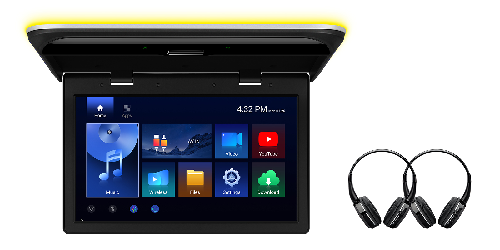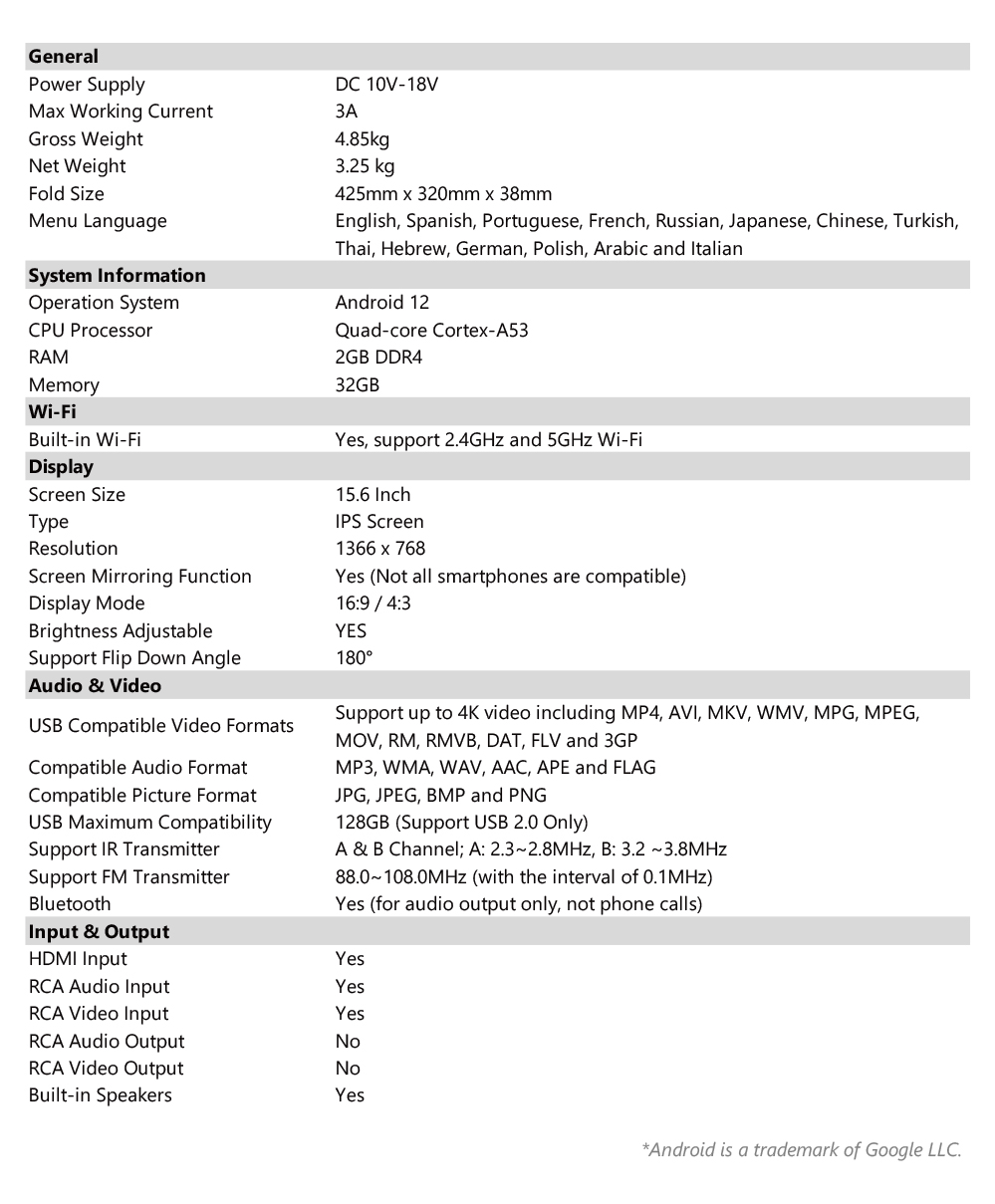 • This Android roof unit supports 1 set of Bluetooth headphone or IR headphone only.