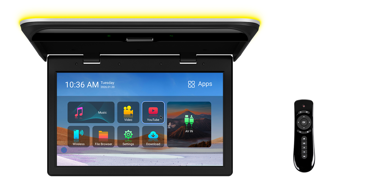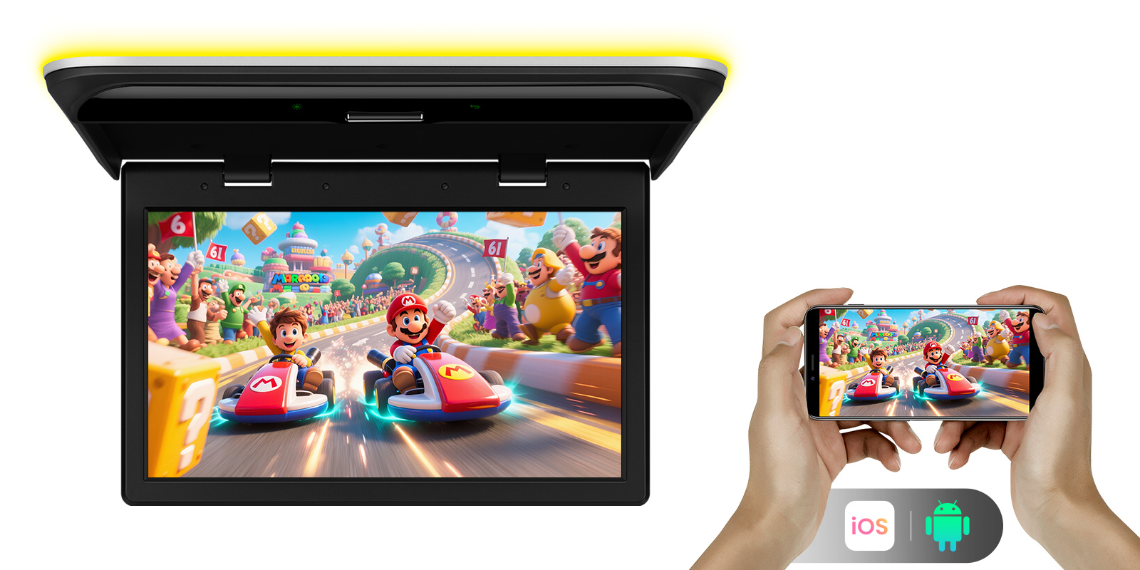 Install it in your vehicle for on-the-go fun, or mount it in your kitchen cabinet for entertainment while cooking – all with an optional AC adapter (min. 12V 2A). Enjoy big-screen entertainment on the road or while cooking at home.