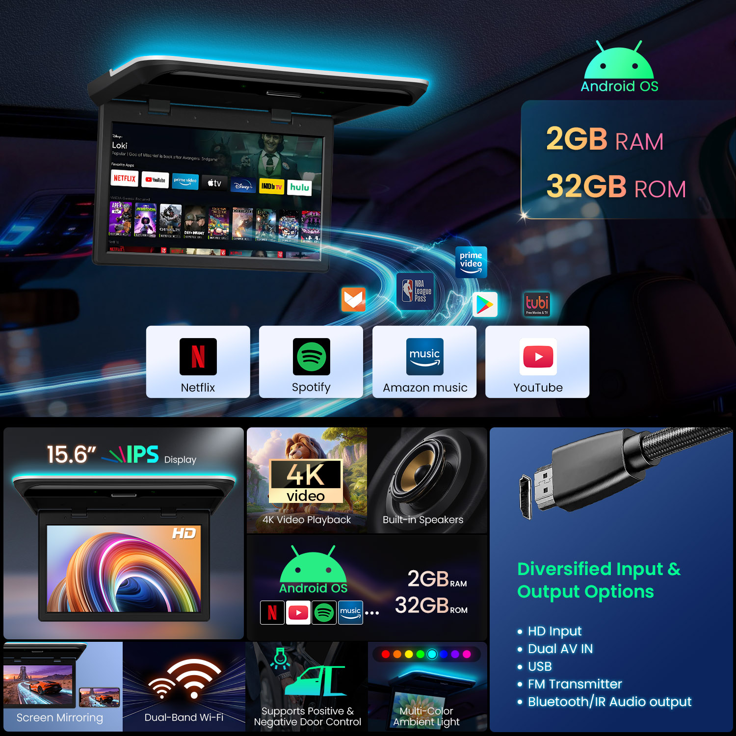 14" | Ultra Narrow Bezel | Android Roof Mounted Player | FHD IPS Screen |16GB ROM  | Superior Sound | CM141A