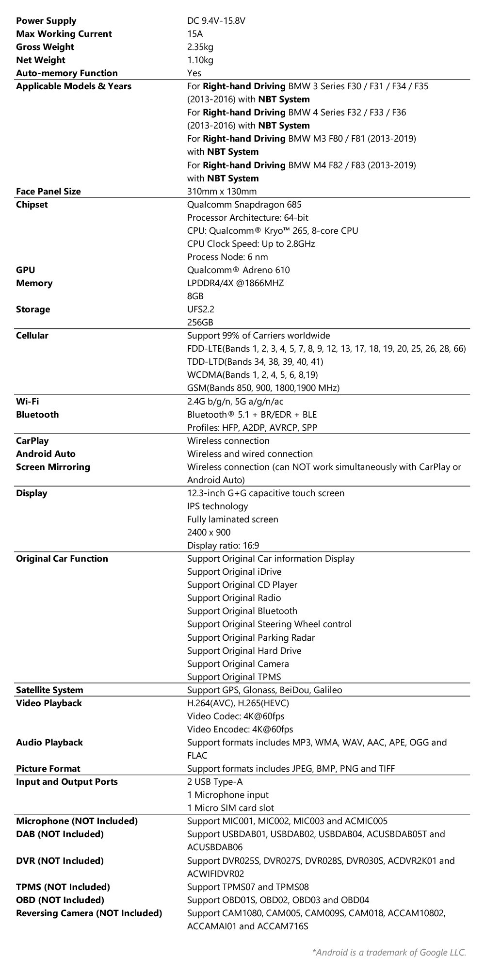 Note:Â This unit is for BMW vehicles that come with a NBT system.
