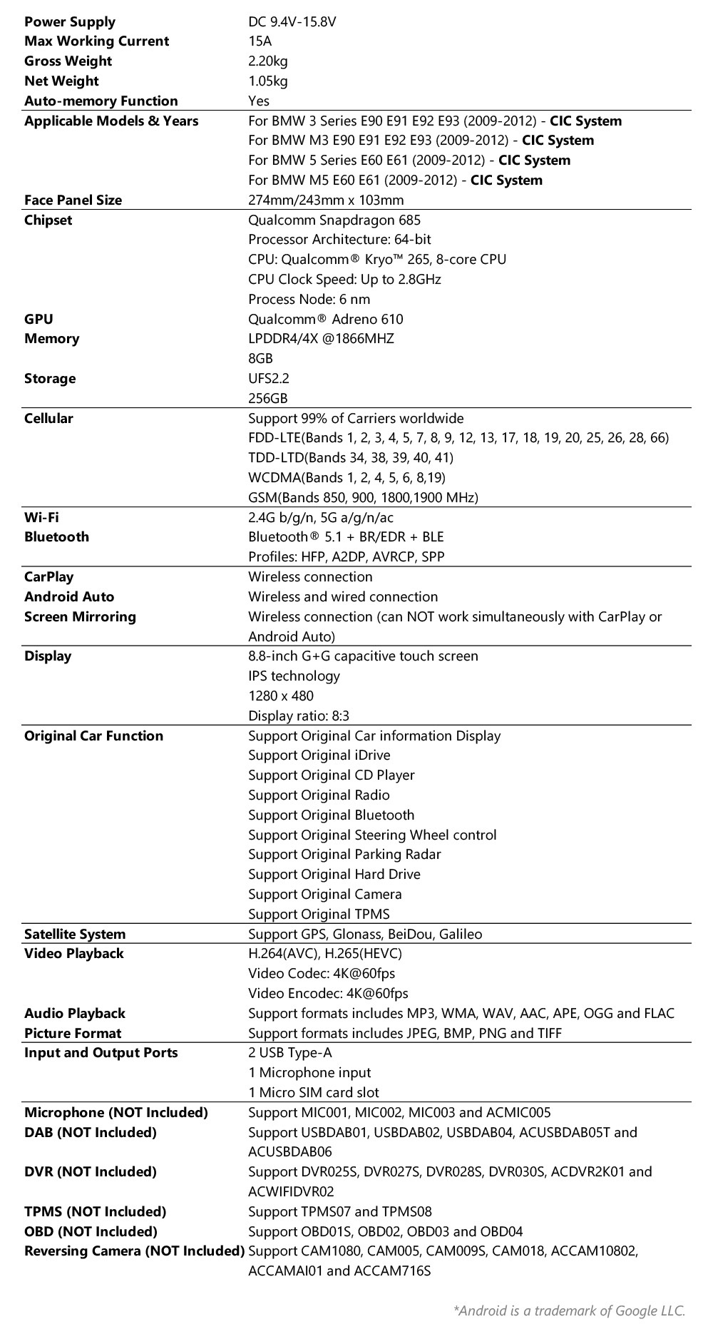 Note: This unit is for BMW vehicles that come with a CIC system.