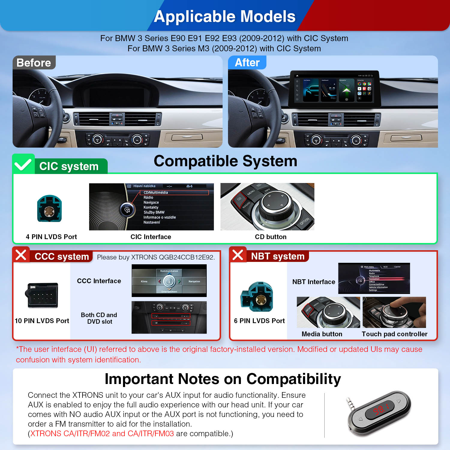 2. Please see XTRONS QGB24CCB12E92 if your vehicle comes with a CCC system.
