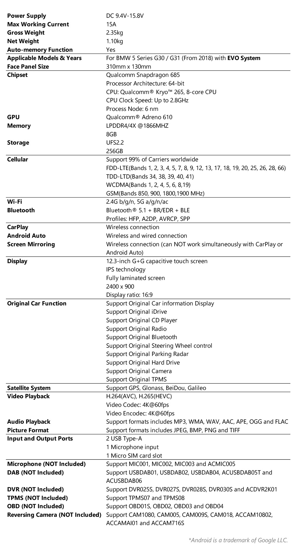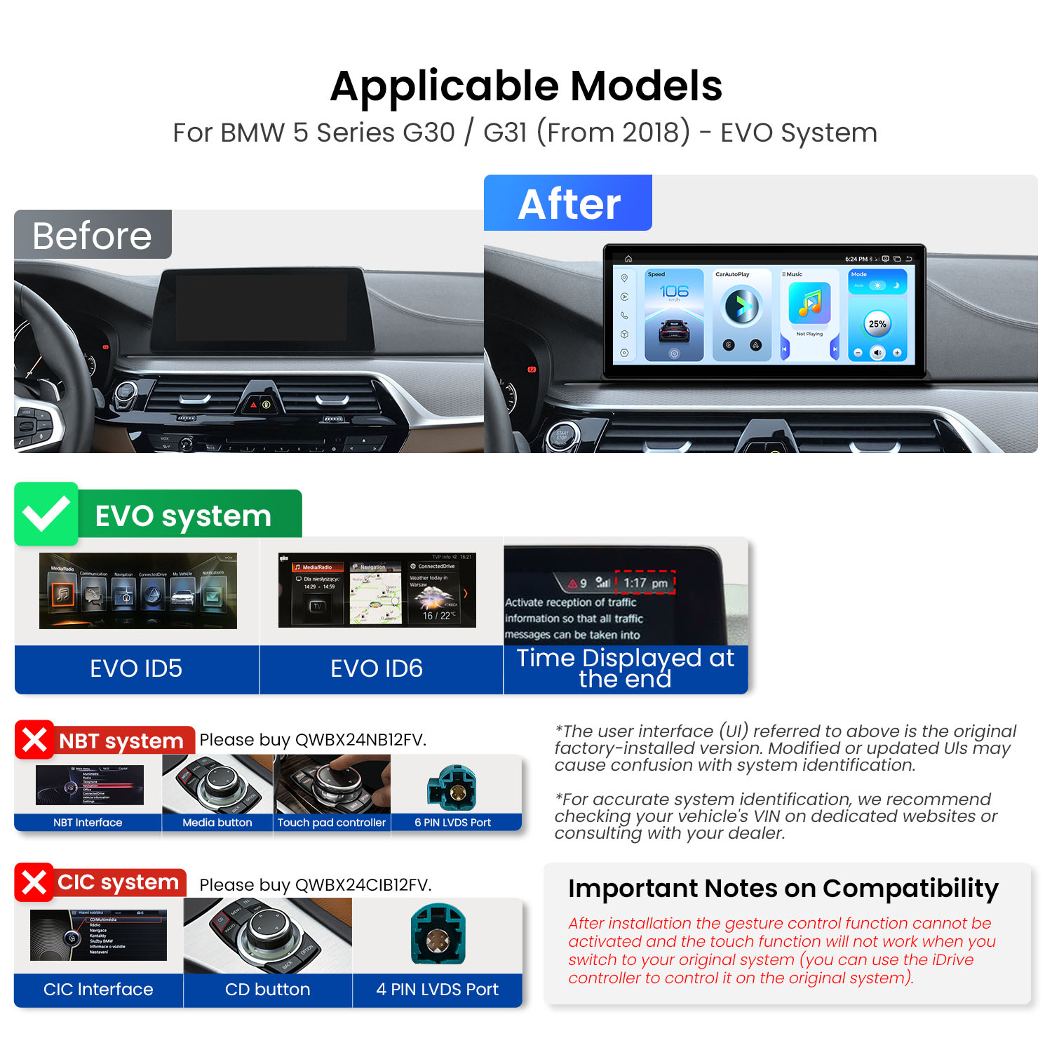 For BMW5 series G30 / G31 (From 2018) with EVO System
