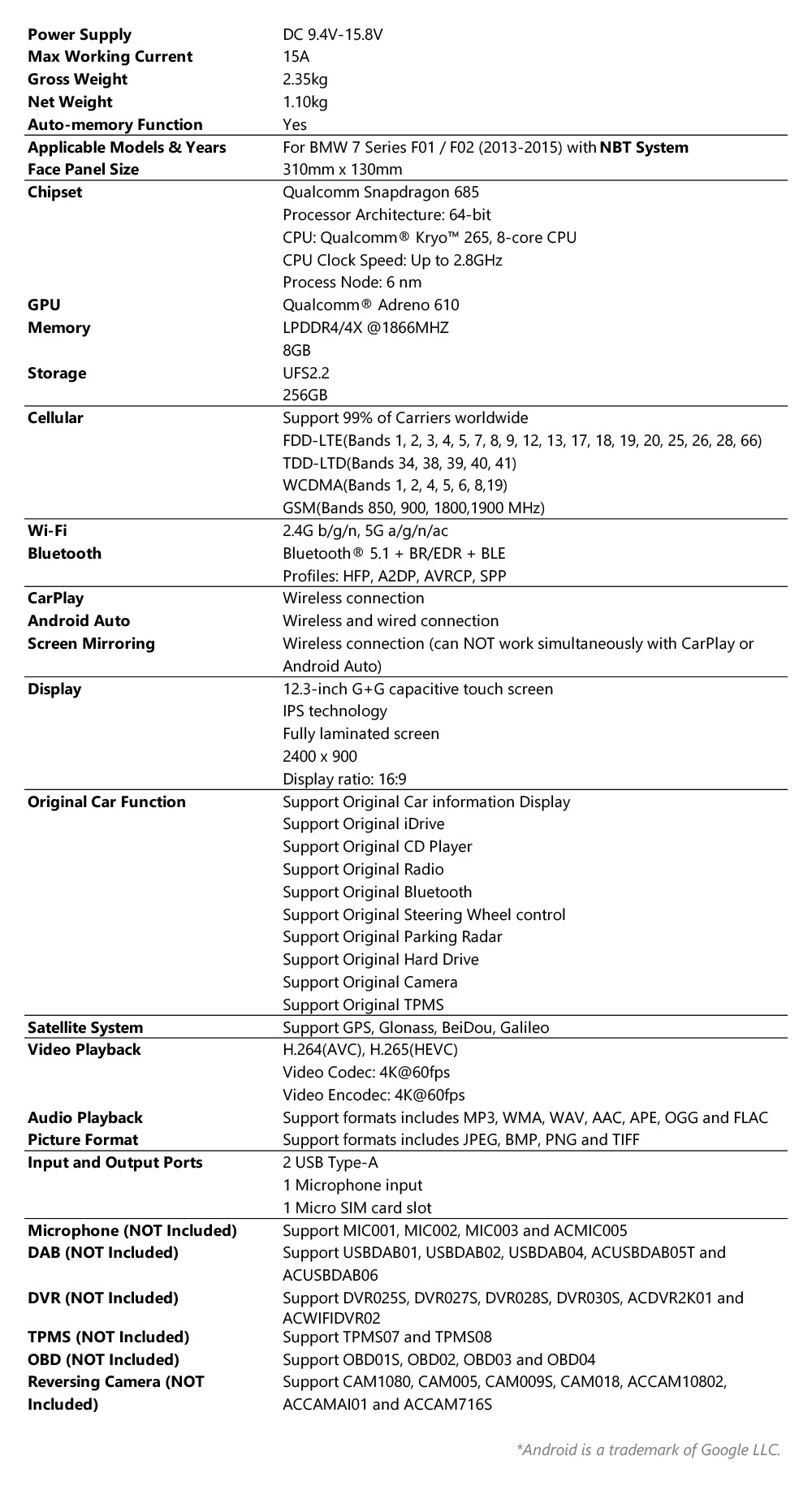 For BMW 7 Series F01/F02 (2013-2015) with NBT System