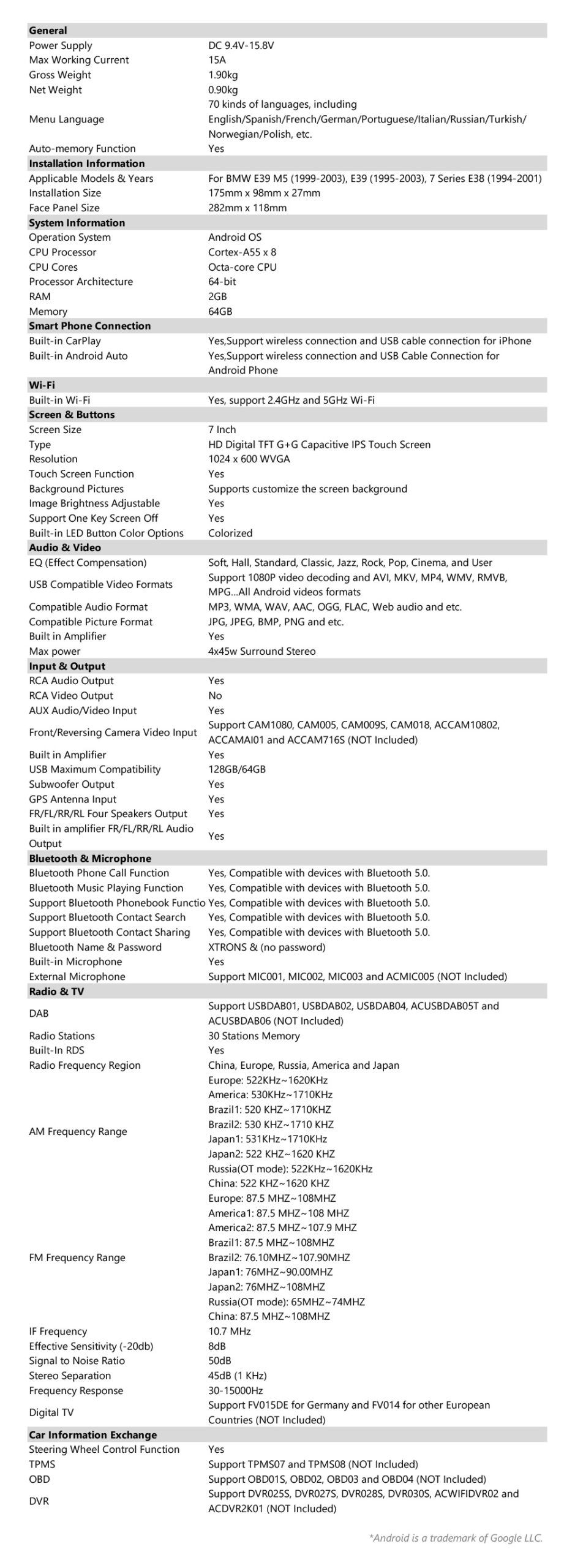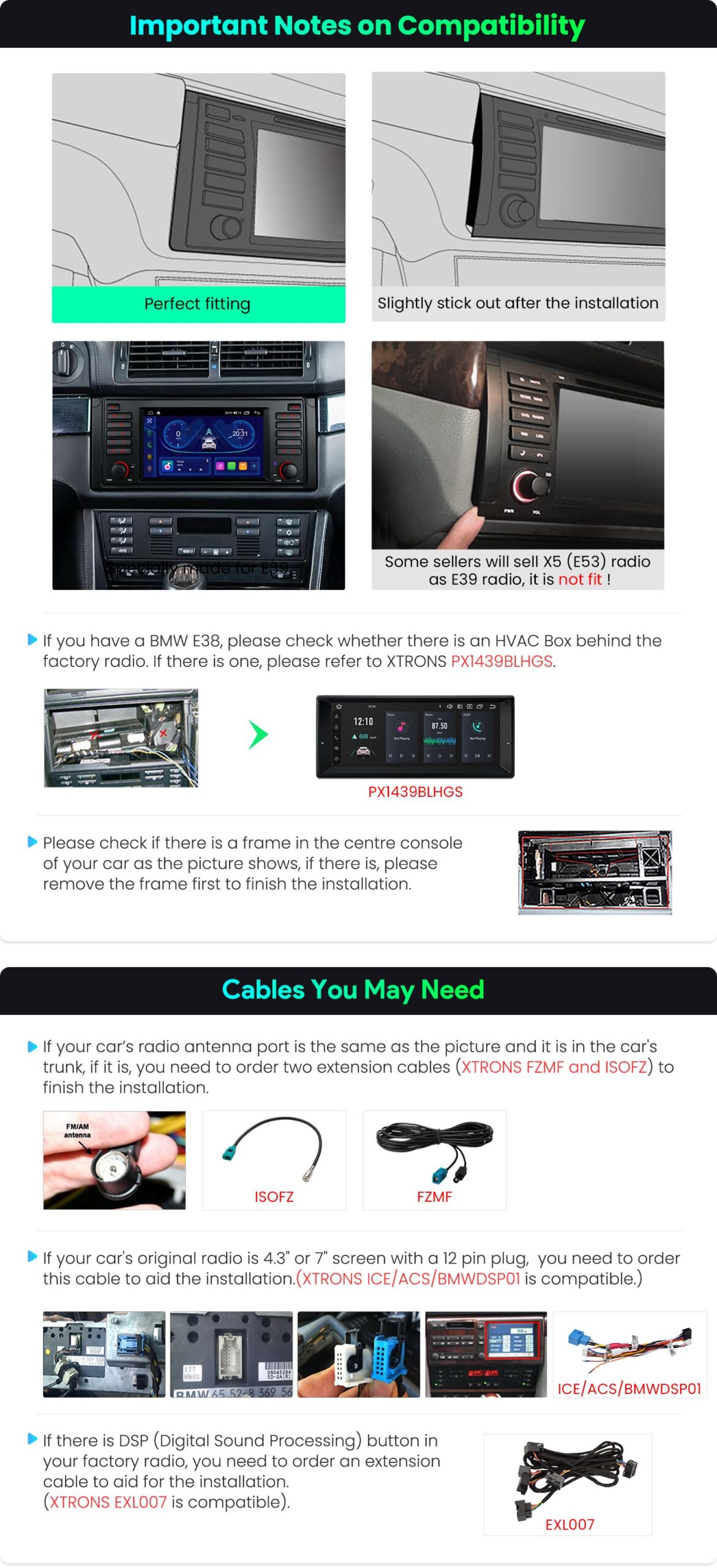 - If you have a BMW E38, please check whether there is an HVAC Box behind the factory radio. If there is one, please refer to XTRONS PX1439BLHGS.