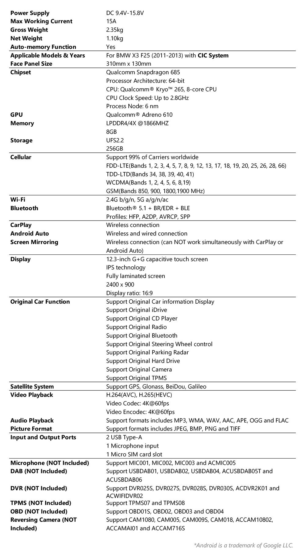 For BMW X3 F25 (2011-2013) with CIC System