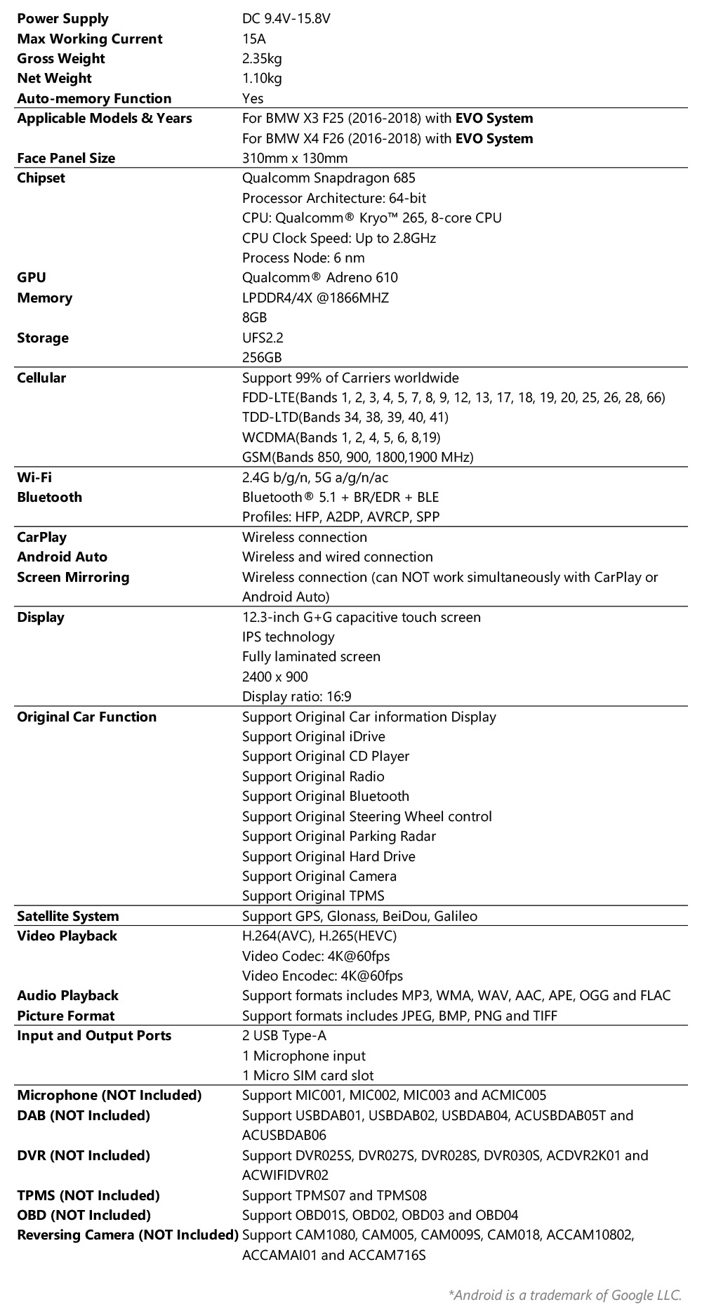 BMW | 3/4 Series | Android / iPhone | Octa-core | 4GB RAM & 64GB ROM | Global 4G LTE | QLB22EVB12THR