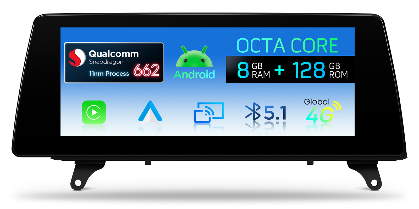 10.25″ Fully Laminated HD IPS Screen Android 14 Octa-Core 64Bit Qualcomm 662 Processor 8GB + 128GB ROM Car Multimedia Navigation System with Built-in 4G Built-in Wireless CarPlay/Full-featured Android Auto Custom Fit For BMW X5 / X6 LHD with CCC System