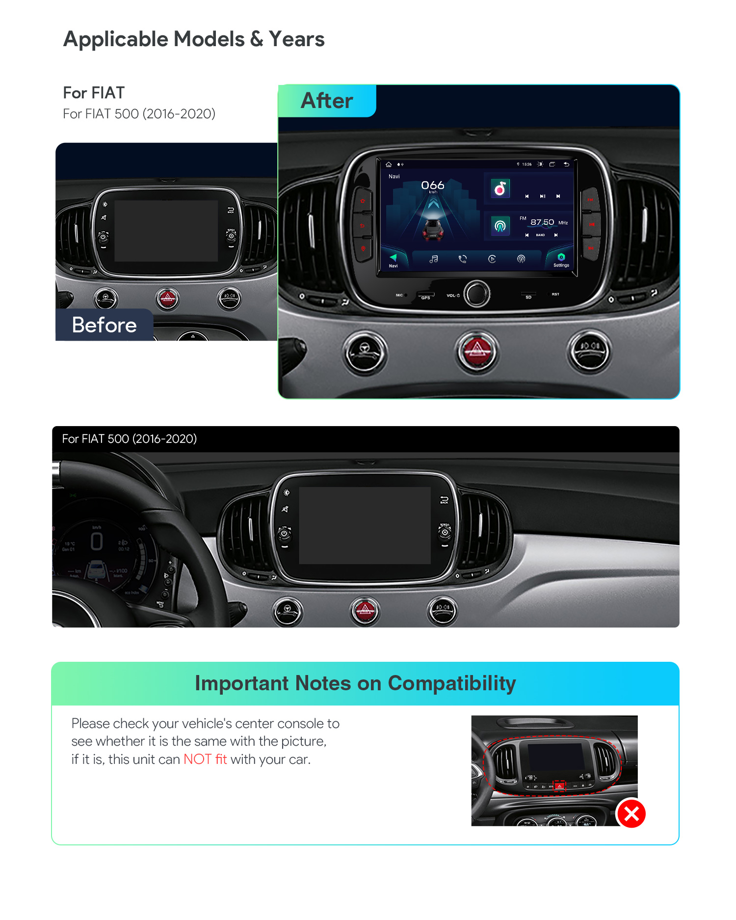 Although we have made every effort to ensure this unit will be compatible with the listed vehicles, please check the year, dimensions and shape of the centre console of your vehicle before purchasing.