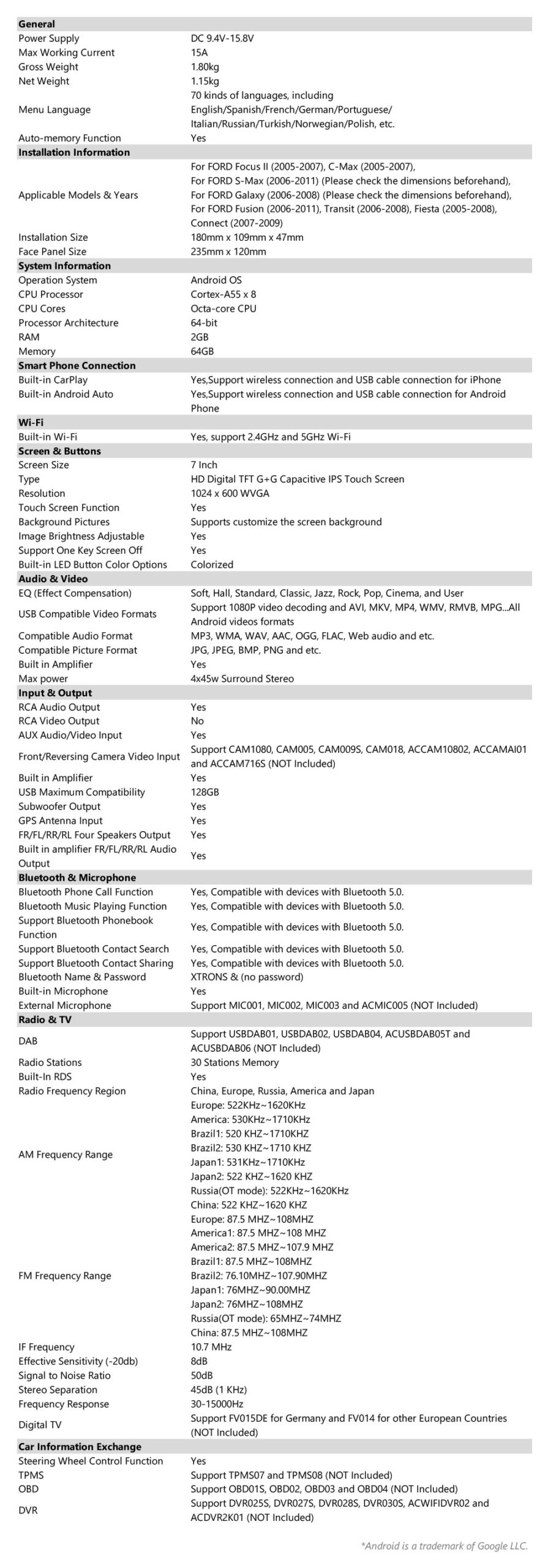 For FORD Galaxy(2006-2008)(Please check the dimensions beforehand),