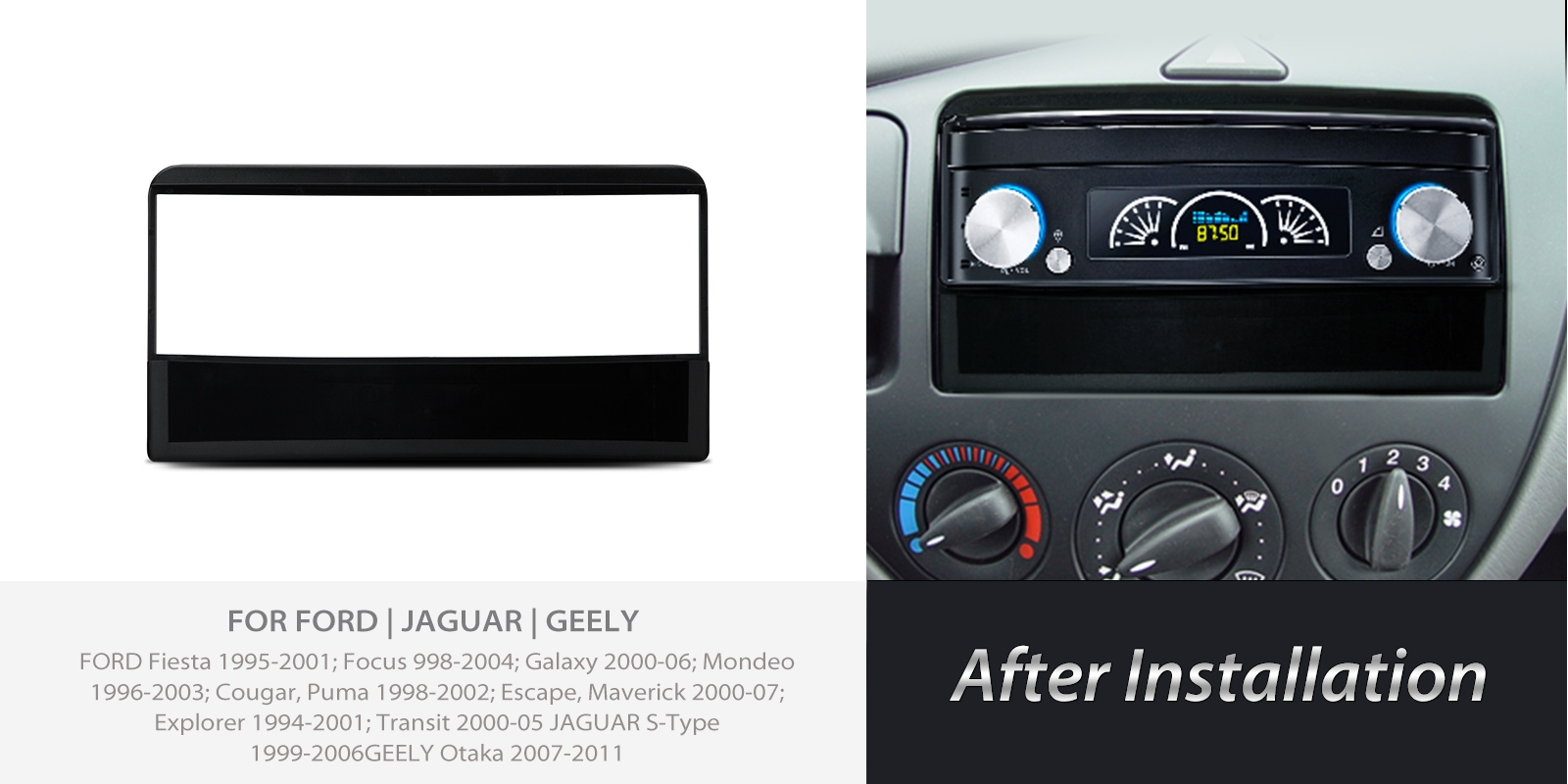 One Din CD Radio Facia Panel Fitting Kit with Pocket for FORD / JAGUAR / GEELY
