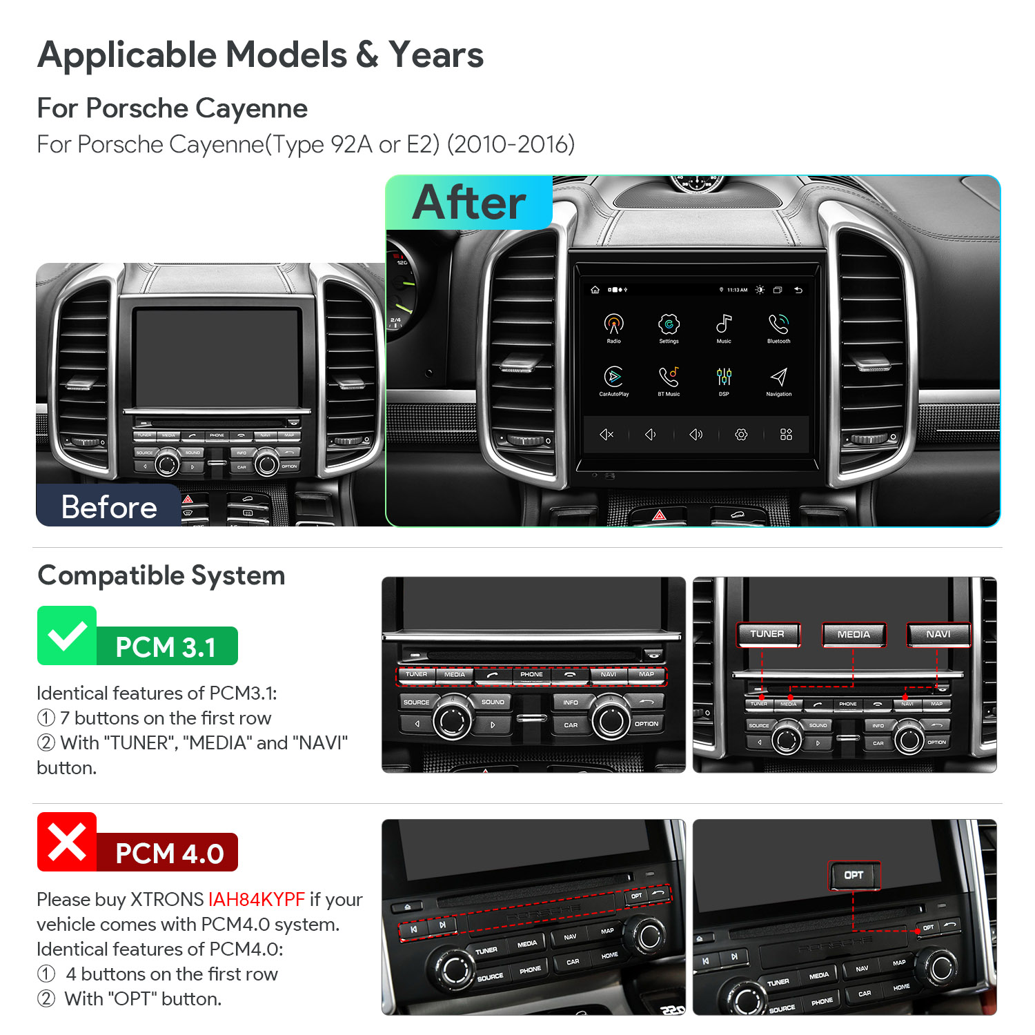 For Porsche Cayenne (Type 92A or E2) (2010-2016) with PCM 3.1 System