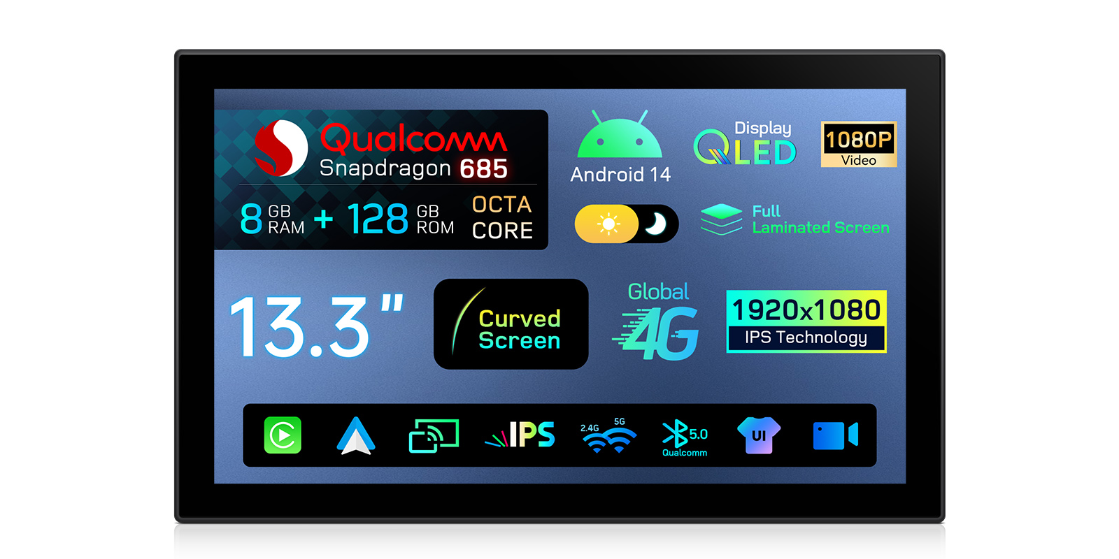 Mercedes | Android / iPhone | Octa-core | 8GB RAM & 128GB ROM | Integrated 4G LTE | QAM1245