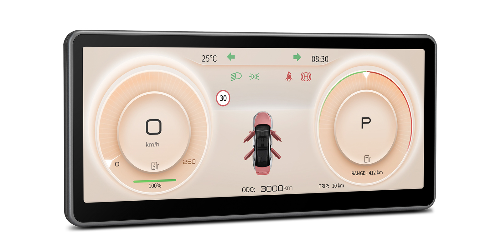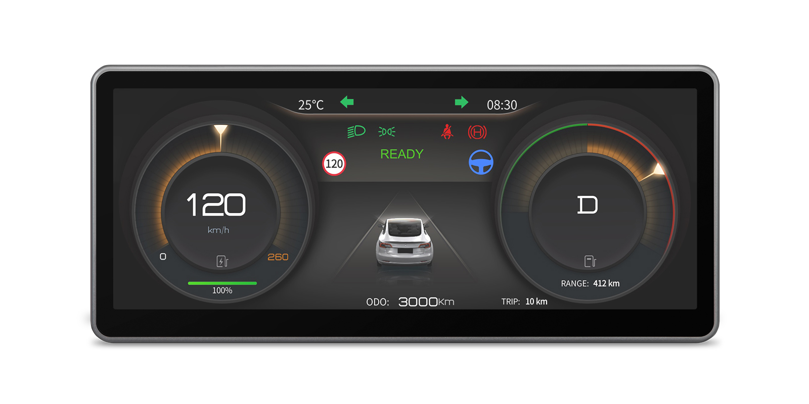 This instrument display blends in harmony with the dashboard. It makes your driving a fascinating experience by providing the driver with all the essential information, along with distraction-free control elements.