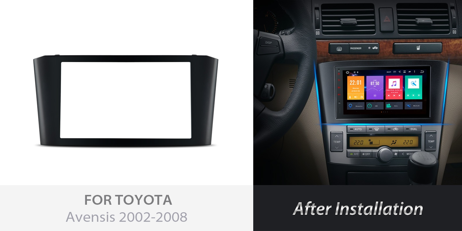 The following vehicles are compatible with this facia plate: TOYOTA Avensis 2002-2008