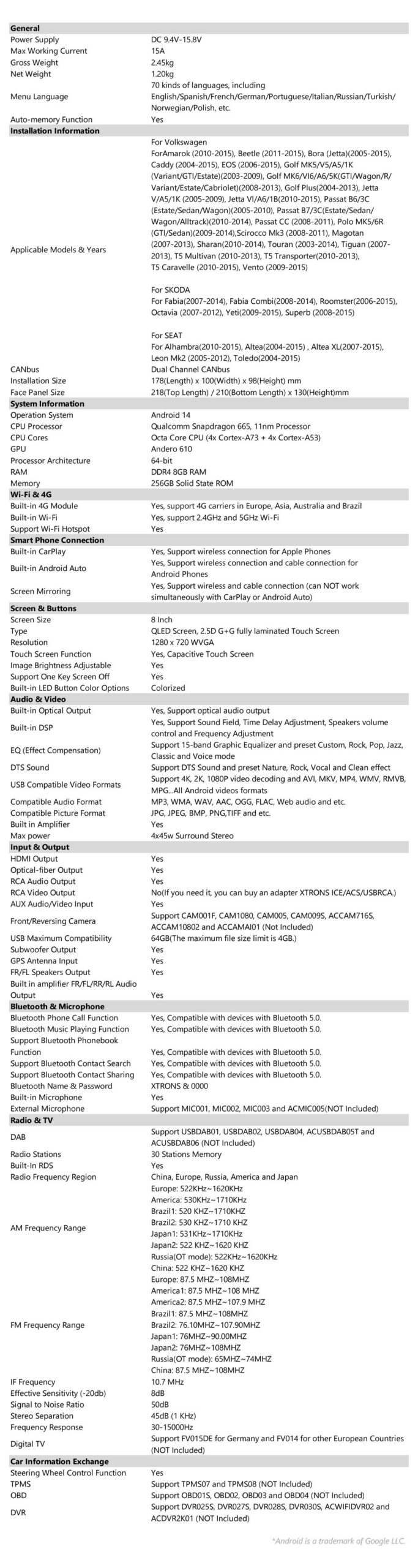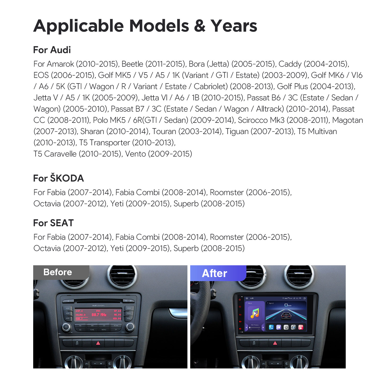 For Amarok (2010-2015), Beetle (2011-2015), Bora (Jetta) (2005-2015), Caddy (2004-2015), EOS (2006-2015), Golf MK5 / V5 / A5 / 1K (Variant / GTI / Estate) (2003-2009), Golf MK6 / VI6 / A6 / 5K (GTI / Wagon / R / Variant / Estate / Cabriolet) (2008-2013), Golf Plus (2004-2013), Jetta V / A5 / 1K (2005-2009), Jetta Vl / A6/1B (2010-2015), Passat B6 /3C (Estate / Sedan / Wagon) (2005-2010), Passat B7 / 3C (Estate / Sedan / Wagon / Alltrack) (2010-2014), Passat CC (2008-2011), Polo MK5 / 6R (GTI / Sedan) (2009-2014), Sciroco Mk3 (2008-2011), Magotan (2007-2013), Sharan (2010-2014), Touran (2003-2014), Tiguan (2007-2013), T5 Multivan (2010-2013), T5 Transporter (2010-2013), T5 Caravelle (2010-2015), Vento (2009-2015)