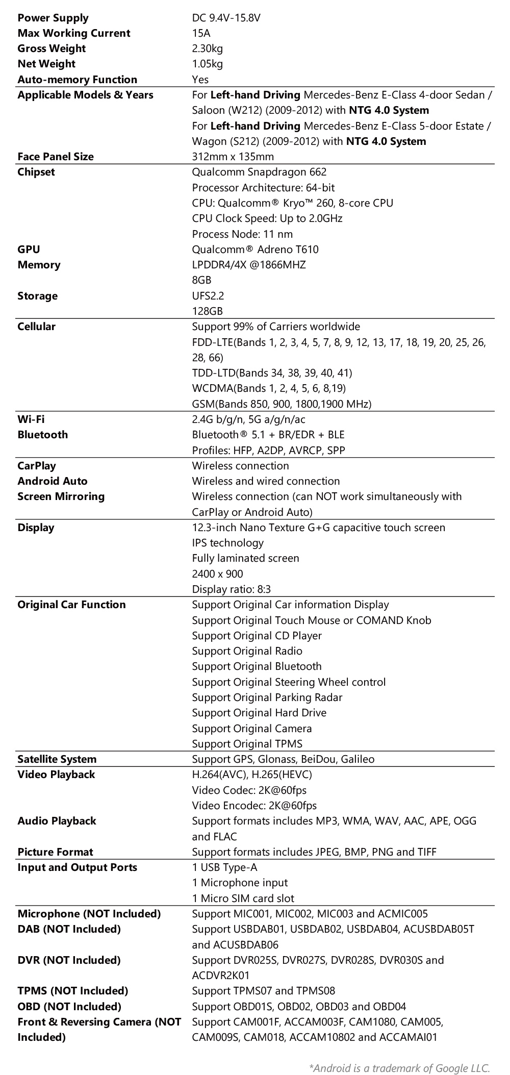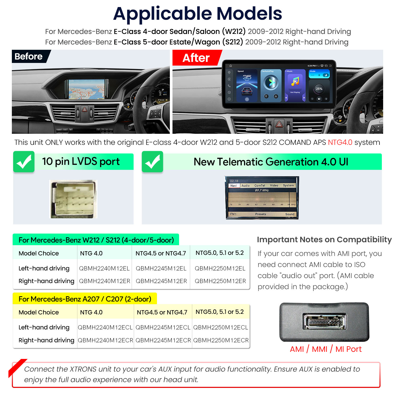 A: Yes. The XTRONS QBMH2440M12ER fully retains all original Mercedes-Benz steering wheel controls (volume, track skip, COMAND navigation) through CANbus integration. No reprogramming needed – plug-and-play compatibility with E-Class W212/S212 models.