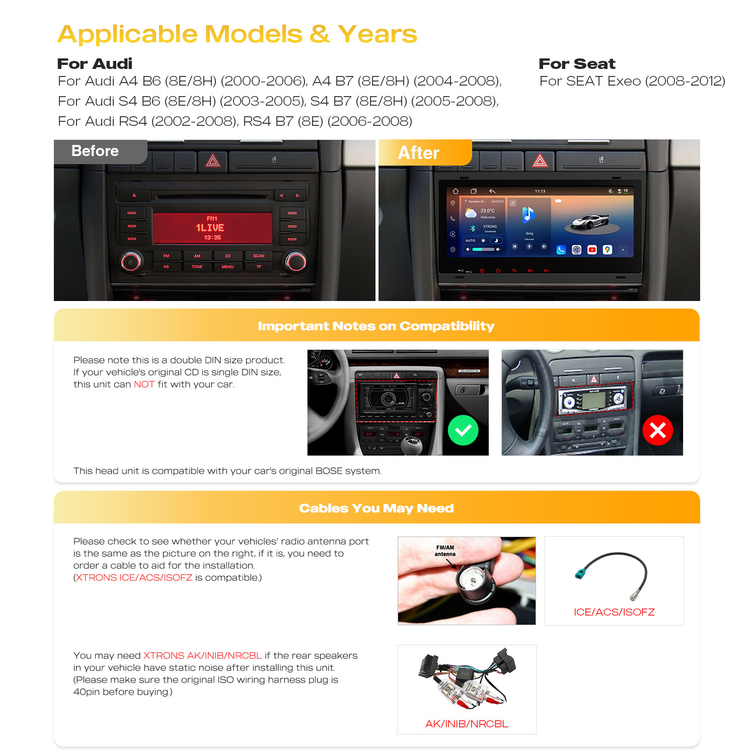 - Please check your vehicle's radio antenna port, you may need to order a cable to aid the installation. (XTRONS ICE/ACS/ISOFZ is compatible)