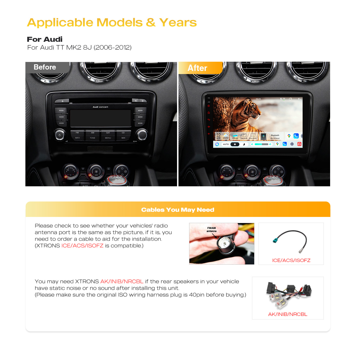 Ready to transform your Audi TT into a tech-savvy companion? 2-year warranty and lifetime technical support mean you’ll never drive alone. Join 50,000+ satisfied drivers who upgraded to the XTRONS IMHP94TTA—where cutting-edge Android 14 meets automotive precision.